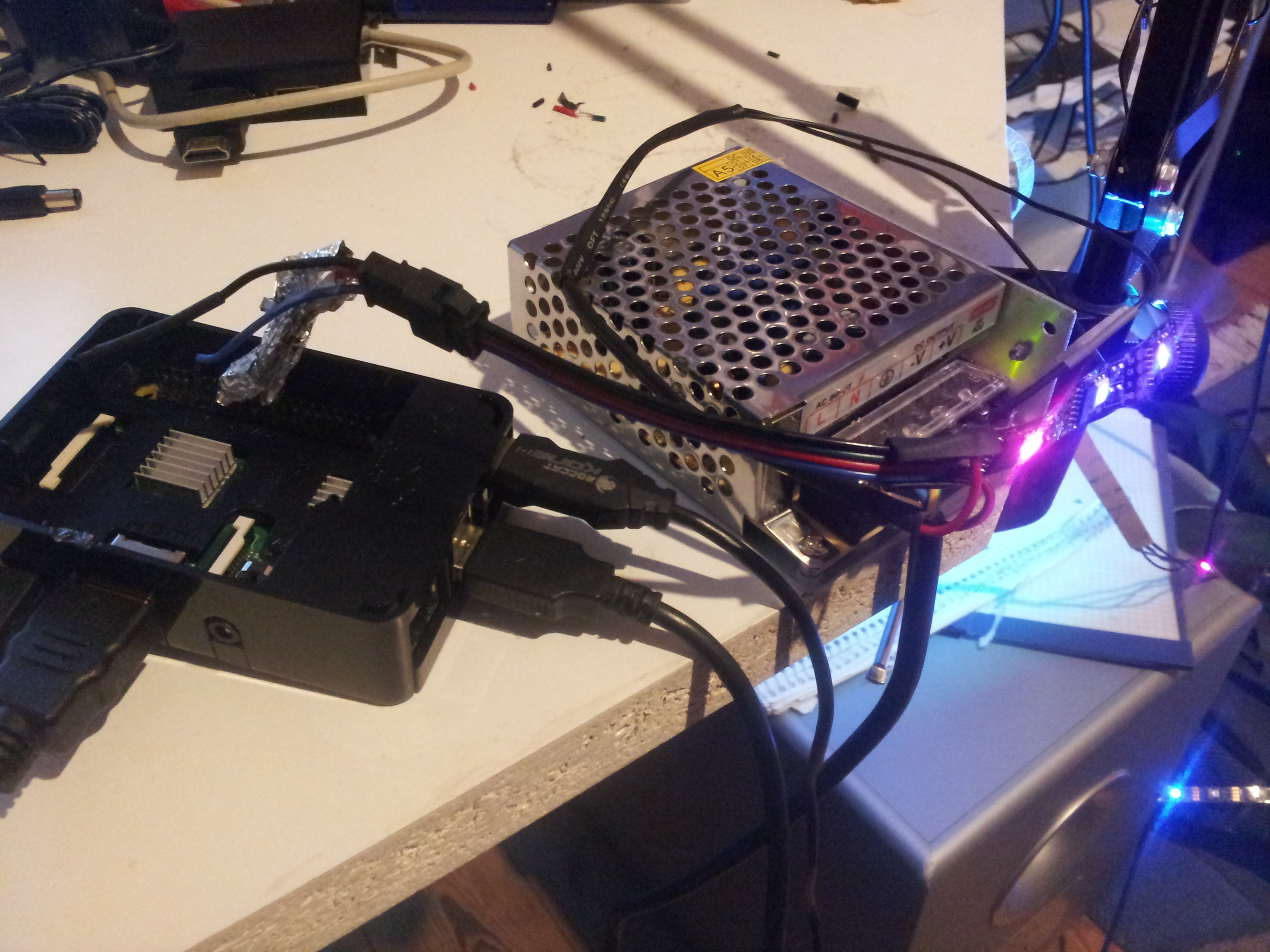 Hier sind noch die Bilder. Scheiont aber bis auf kleinere Flackereien zu funktionieren, wenn ich das Kabel richtig befestige. Wie könnte ich das Flackern komplett wegbekommen?