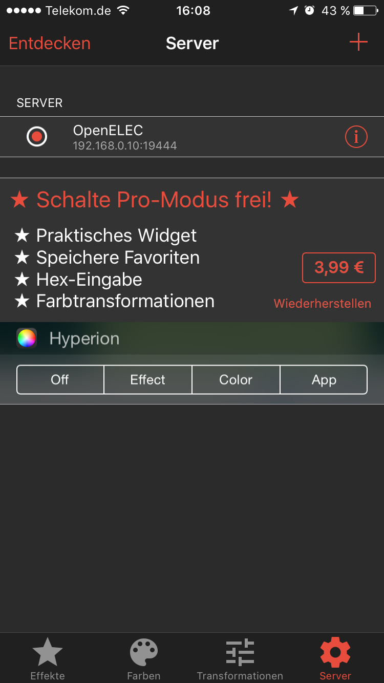 Einstellung ist aktiv. Ja, ich hab einige Einstellungen probiert bei Hyperion.. kann sein das da der Fehler liegt // Automatically generated configuration file for 'Hyperion daemon' // Generated by: HyperCon (The Hyperion deamon configuration file builder { /// Device configuration contains the foll...