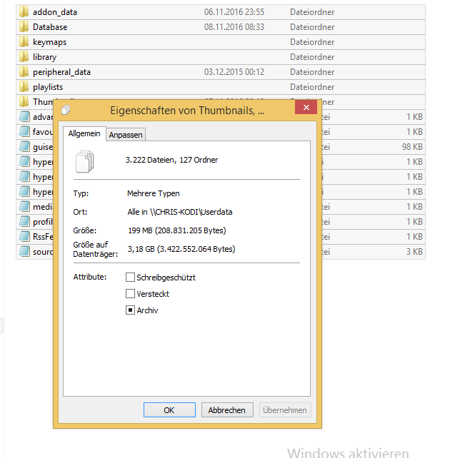 Habe dann geguckt und die Speicherauslastung war sogar bei 100%. Ich habe dann mal weiter gesucht und der Thumbnailsordner hat tatsächlich 32GB auf dem Datenträger eingenommen (eigentliche größe war natürlich viel kleiner). Habe dann die kompletten Bilddateien gelöscht. Habe in die advancedsettings den Speicherort der thumbnails geändert, sodass diese direkt auf der Mycloud (meine NAS-Lösung) gespeichert werden um den Pi zu schonen. Das funktioniert auch wunderbar, der Thumbnailsordner aufm Pi ist nun 0B groß.