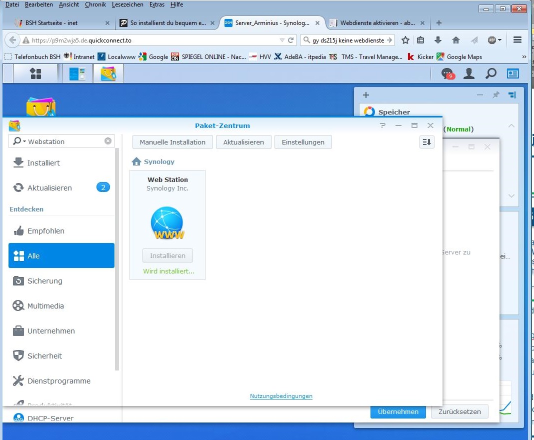 Allerdings sieht das Menü anders aus als im Tutorial. Die Option "Web Station aktivieren" gibt es nicht. Ich könnte mir allerdings vorstellen, dass die Web Station durch das Installieren aus dem Paketzentrum bereits aktiviert ist.