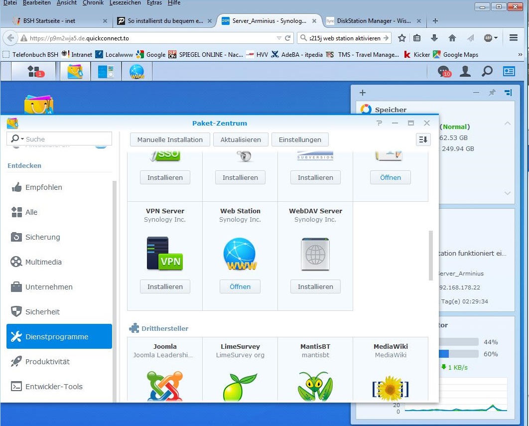 Unter "Dienstprogramme" müsstest du anschließend die Web Station finden und öffnen können.