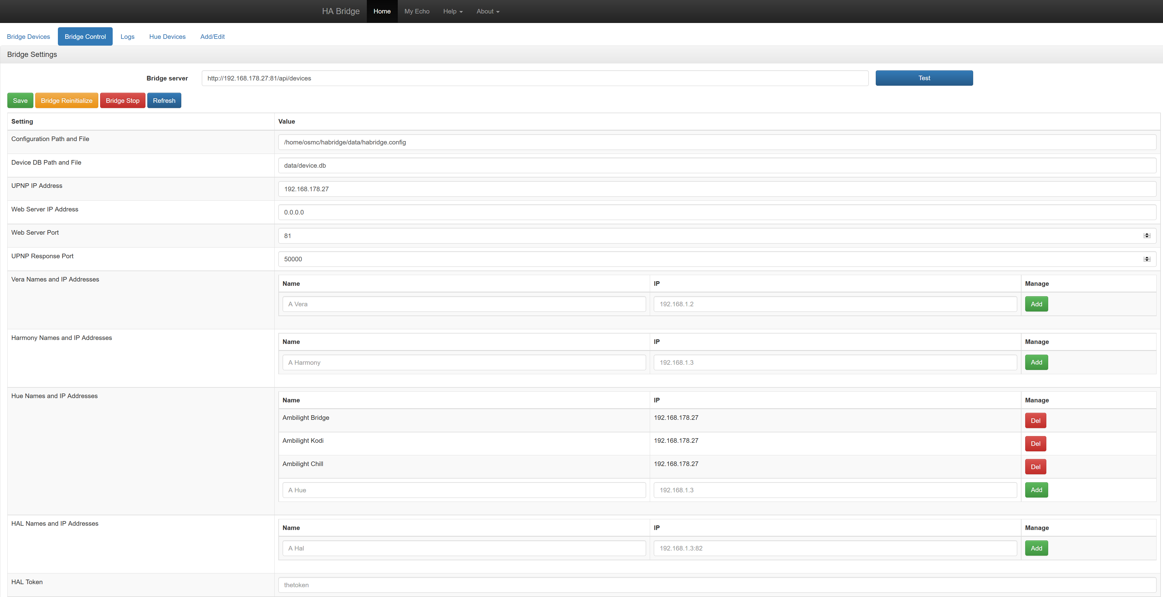 Hier mal eine kleine Anleitung, sofern habridge erfolgreich installiert wurde. Mein Betriebssystem ist OSMC. Bei anderen Betriebssystemen (OpenElec, LibreElec) können sich die Pfade natürlich unterscheiden: