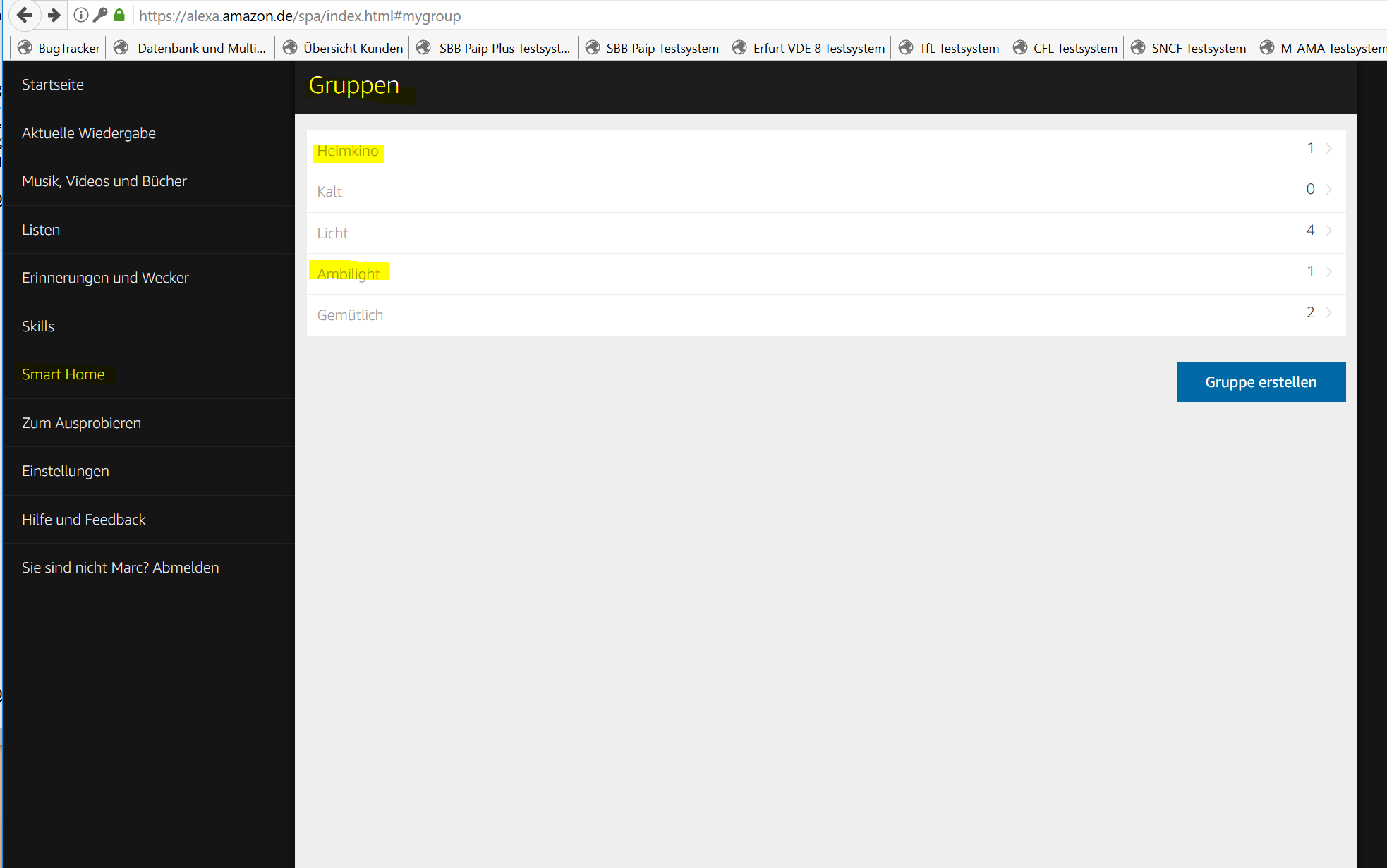 So sehen die Gruppen in Alexa dann aus:
