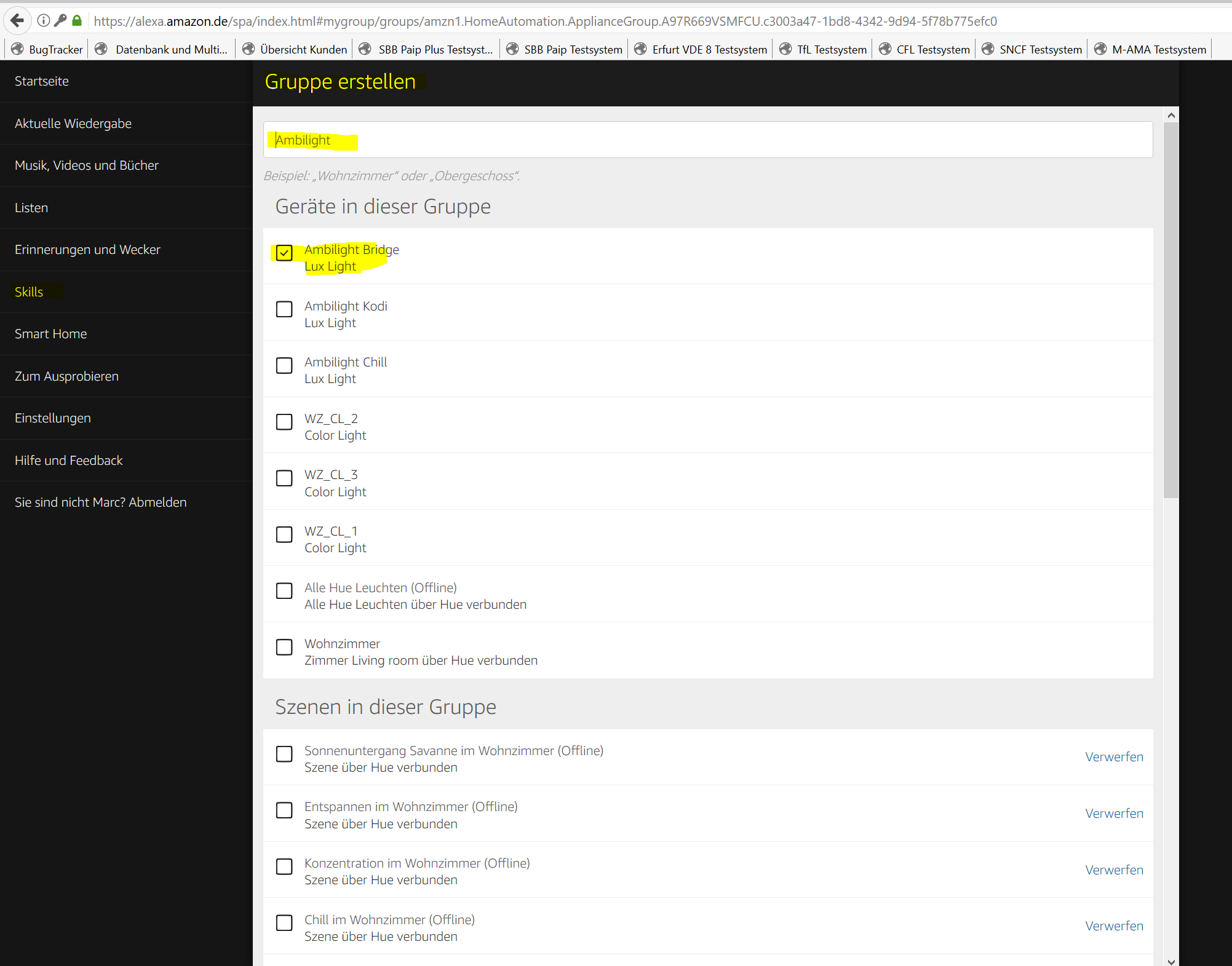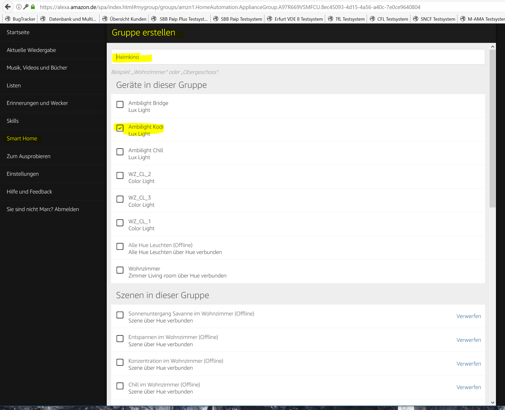 Anschließen erstellt man jeweils eine Gruppe, die später auch das Signalwort für ALEXA sein wird. In meinem Fall ist das :