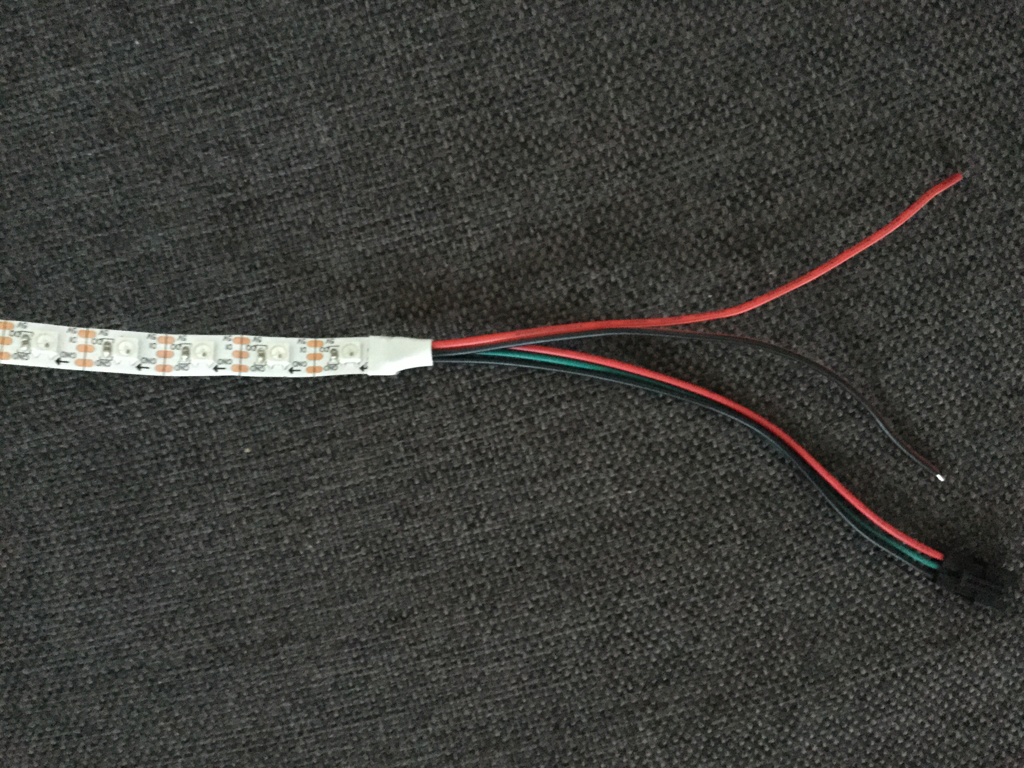 Also das Rote und das Schwarze Kabel musst du mit dem Netzteil verbinden, welches dann die LEDs mit Strom Versorgt.