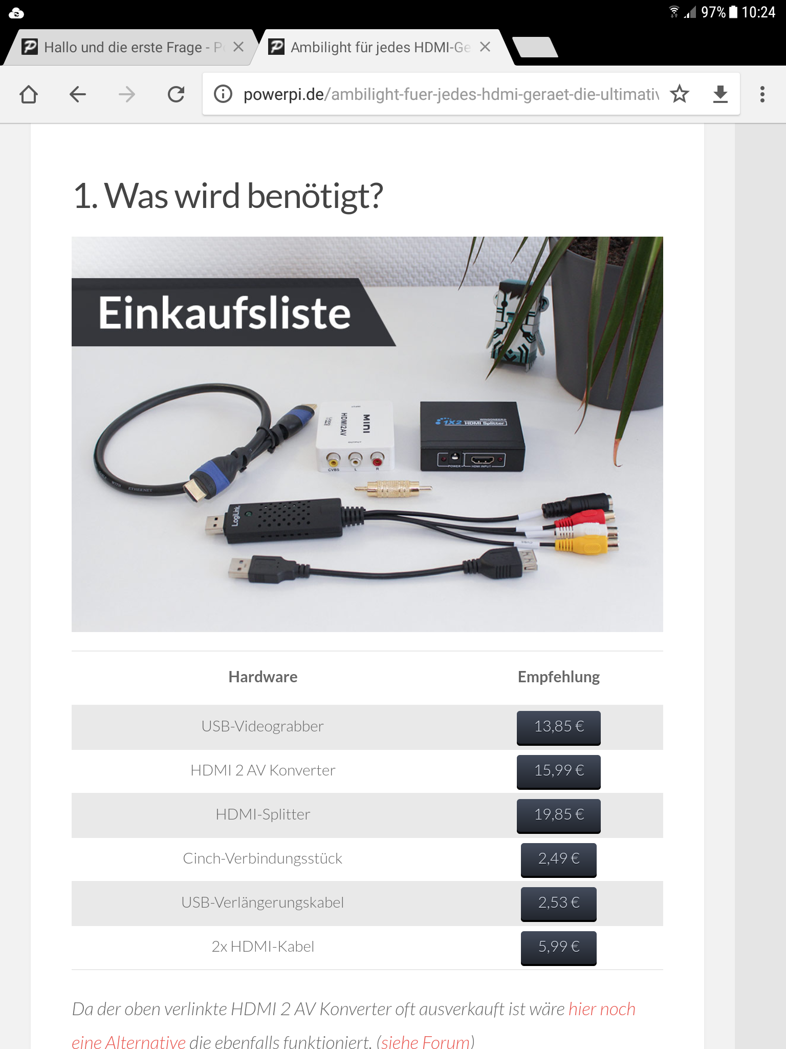 Ok Danke ist die Einkaufsliste im Blog eh noch aktuell ?