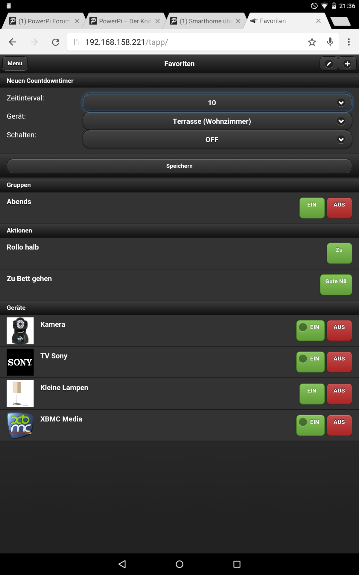 Steuern kann man den Brematic Gateway z.B. mit der App Powerswitch händisch über das Tablet oder Smartphone. Powerswitch auf Tabler/Smartphone ersetzt somit nach der Einrichtung die Funkfernbedienung die den Funkschaltern beiliegt.