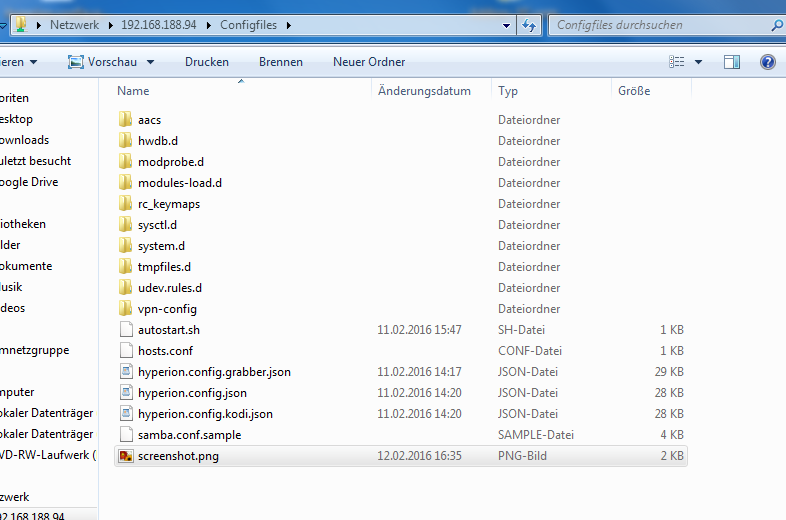 So sieht in Configfiles ordner.