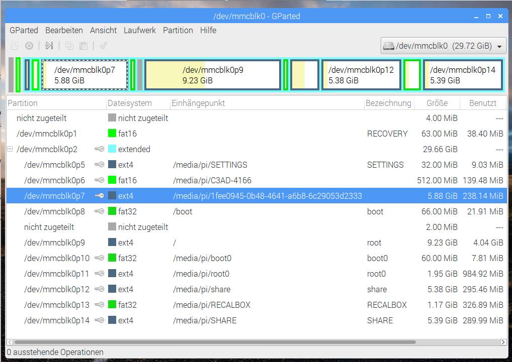 /dev/mmcblk0p10 2.0G 93.3M 1.8G 5% /recalbox/shareWeiß jemand wie ich möglichst einfach meine Partitionen so hinbekomme, das ich die Speicherkarte voll nutzen kann? Ich habe momentan nämlich nur auf insgesamt 8GB Zugriff und bei Recalbox gar nur 1GB.