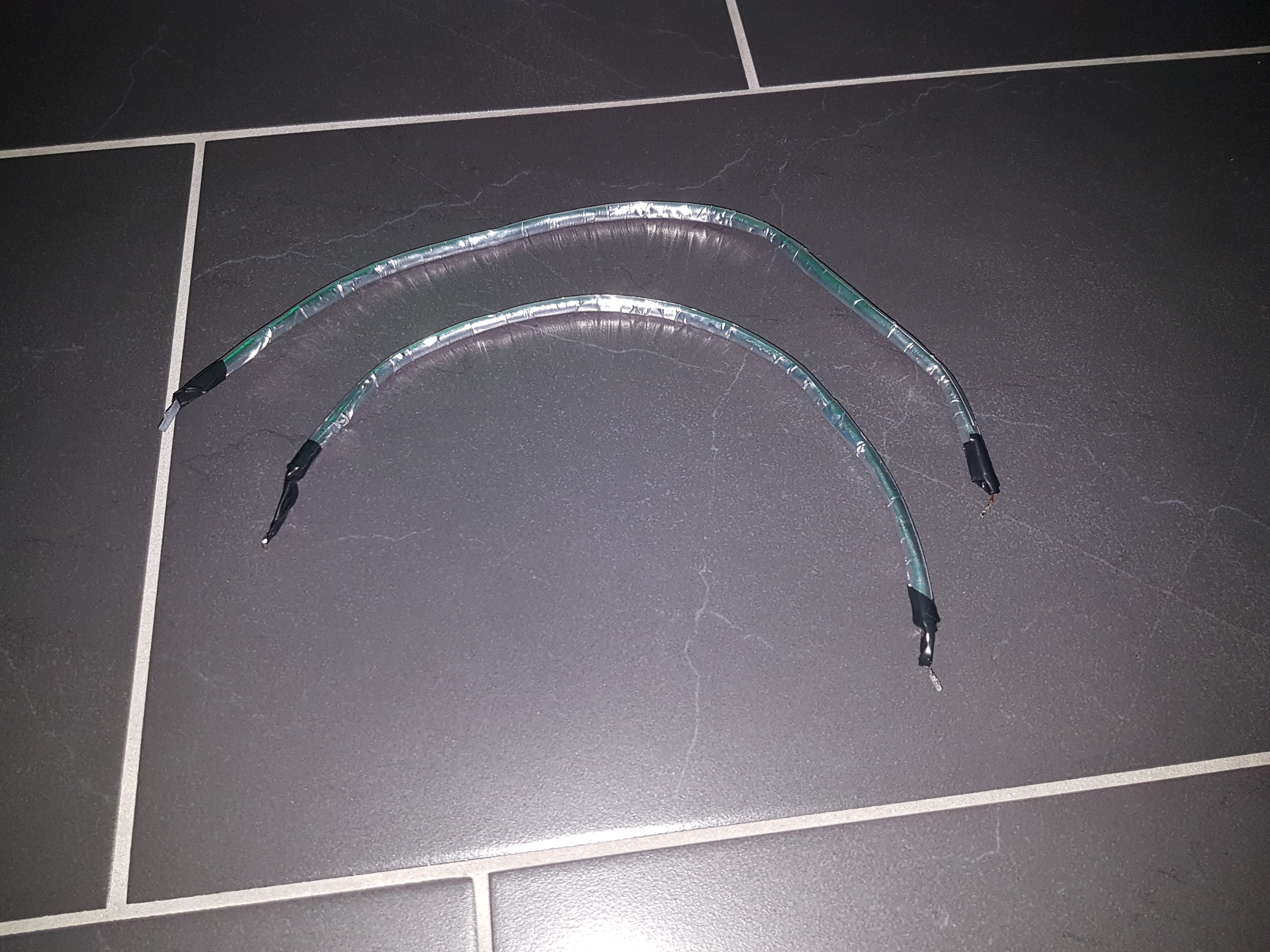 Für das Datenleitung hatte ich bereits Netzwerkkabel verwendet ( je Leitung 1 Kabel) welches ich zusätzlich mit Aluband ummantelt hatte.(Alter Beitrag weiter oben)