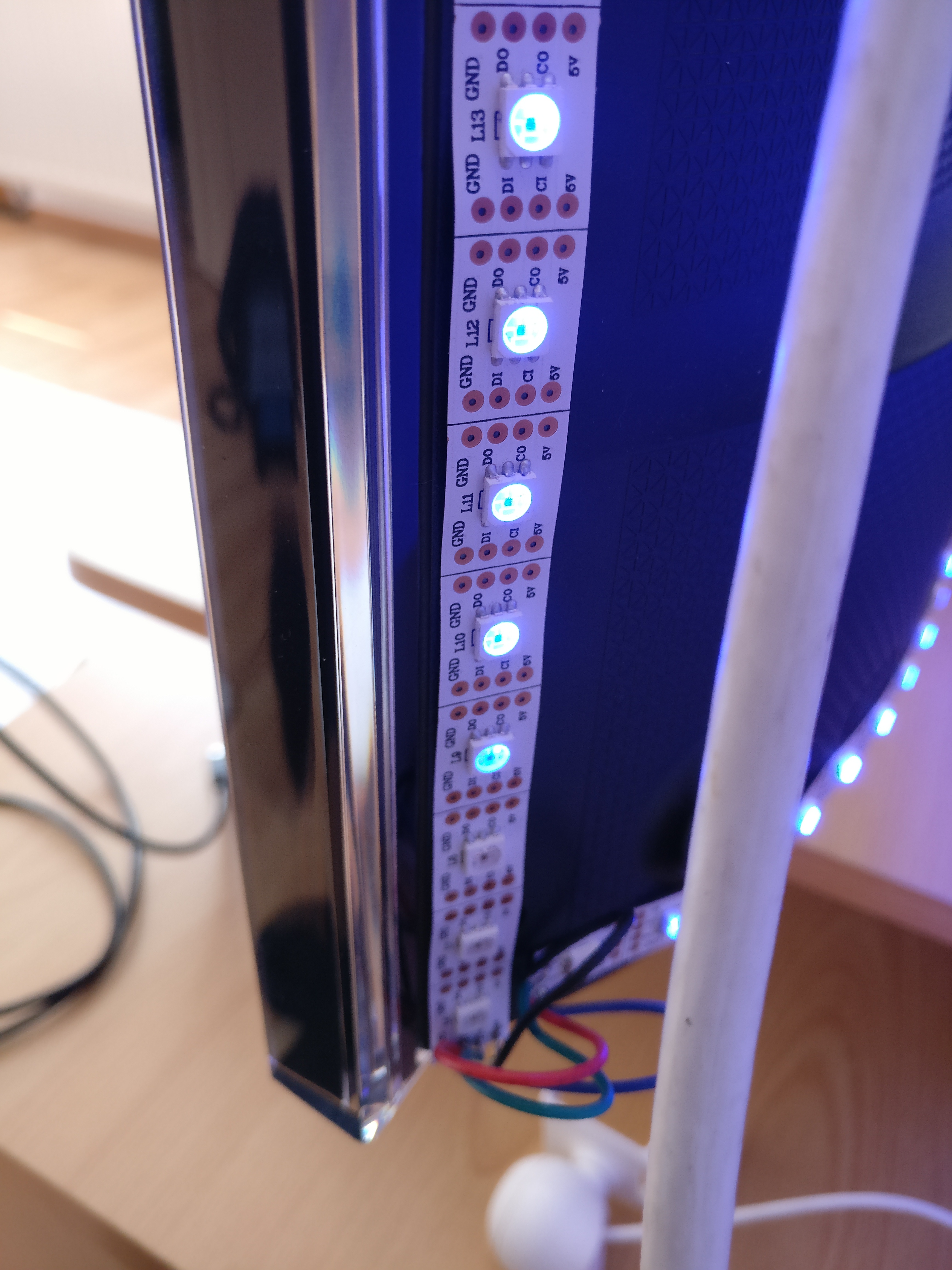 Ich bins wieder. Vielleicht wähne ich mich fälschlicherweise kurz vor der Zielgeraden. Aber: Es klappt auch fast komplett mit dem Grabber. Das einzige Problem was ich habe ist, dass nicht alle LEDs angesprochen werden. Es bleiben 16 (von 190) leds dunkel; und zwar immer die selben. Ich habe Fotos der betroffenen LEDs angehangen. Wenn man auf den Tv blickt sind das einmal welche unten rechts (kurz hinter dem Stripefangen) oben rechts oben links und unten links (dort als einziges nicht die unmittelbar in den Ecken liegenden). Die "mittleren" LEDs leuchten grundsätzlich (ausnahme links unten). Es lassen sich auch alle per HyperionApp ansprechen.