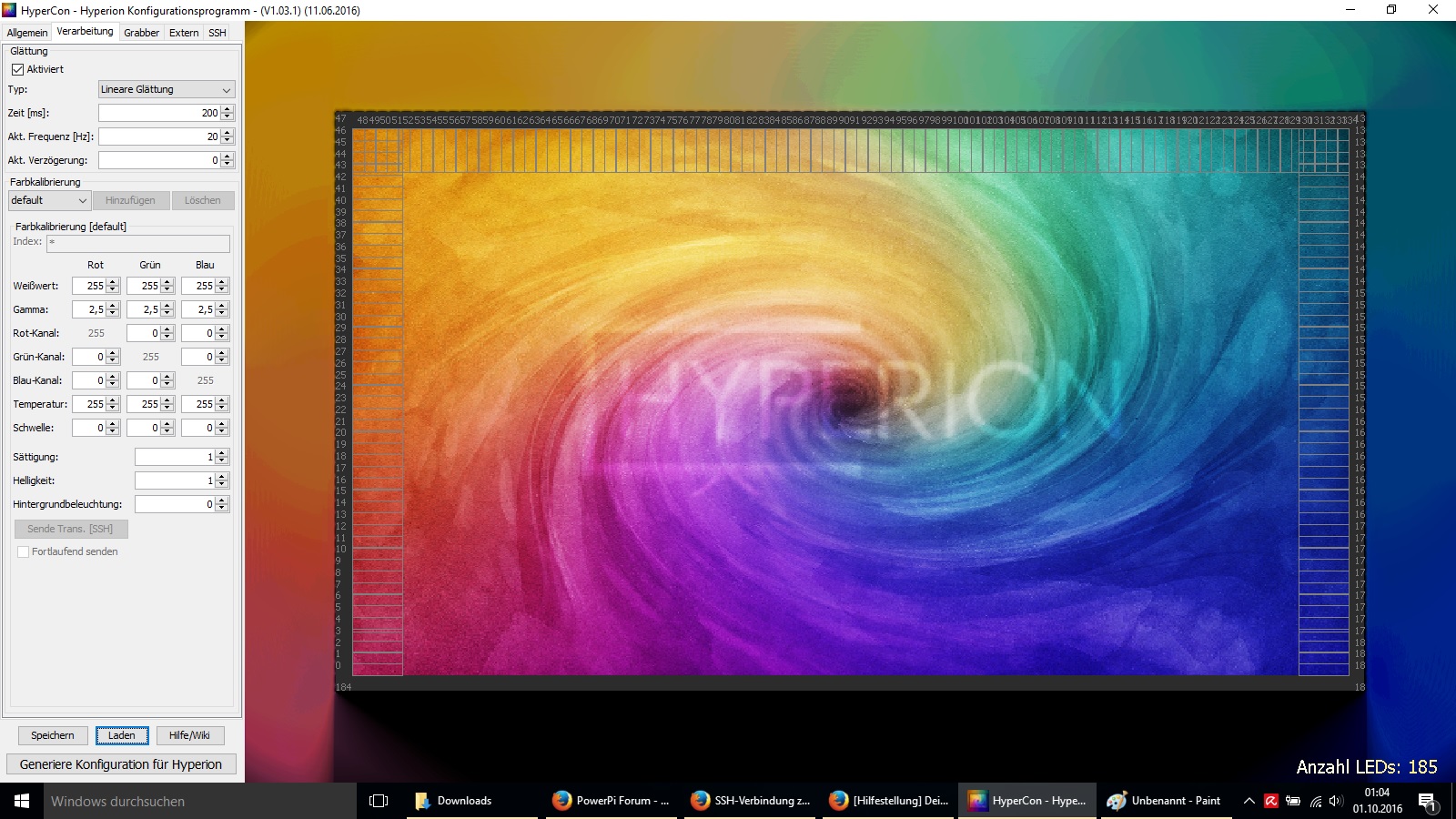 Allerdings nicht mit dem HyperCon Tool sondern sondern mit der hyperion.config.json aus dem Test Image was ich dann mit dem Editor angepasst habe.