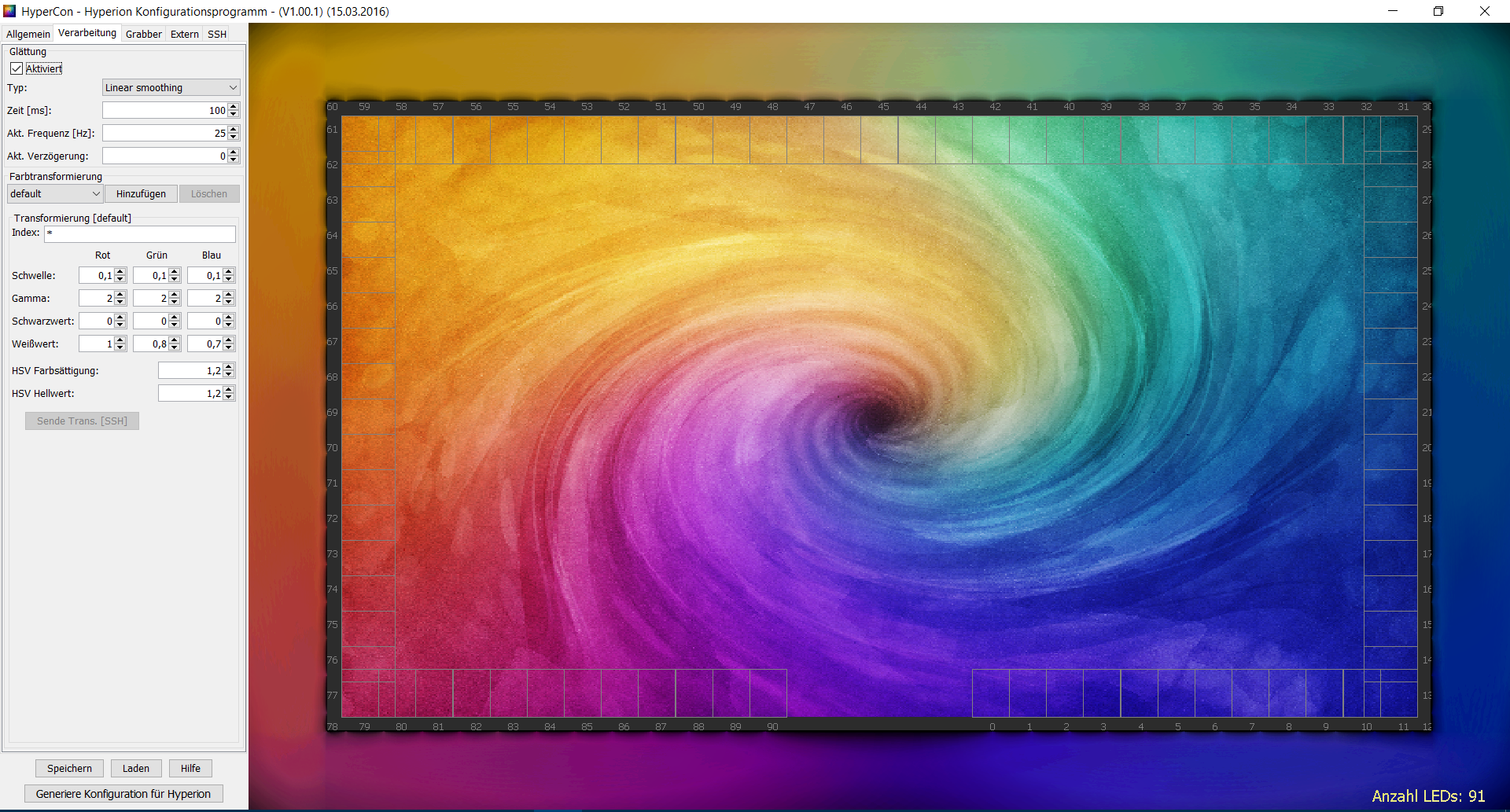 Bei den Testbildern (rot,grün, blau und rotgrünblau in einem Bild) sowie bei der Ansteuerung per App stimmen die Farben und es gibt kein flackern! Bei Bildern mit mehreren Farben und Filmen kommt es zum Flackern der LEDs.