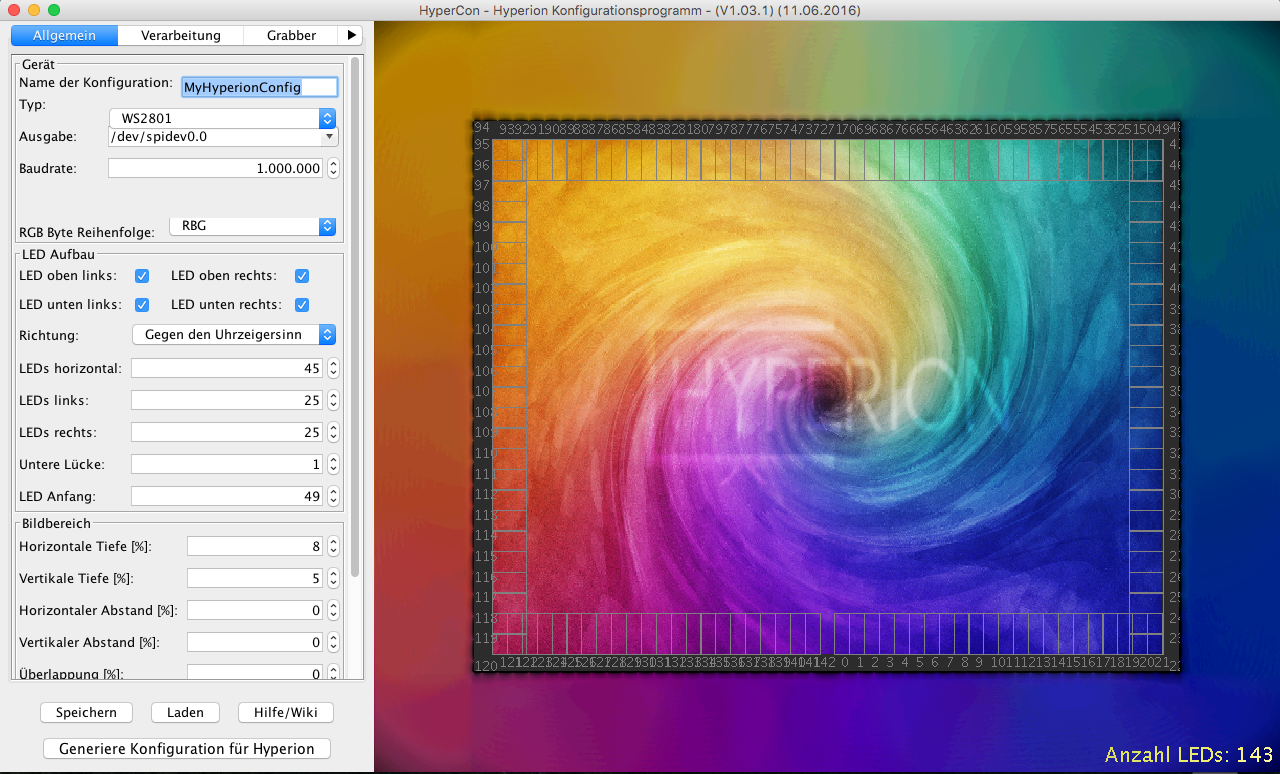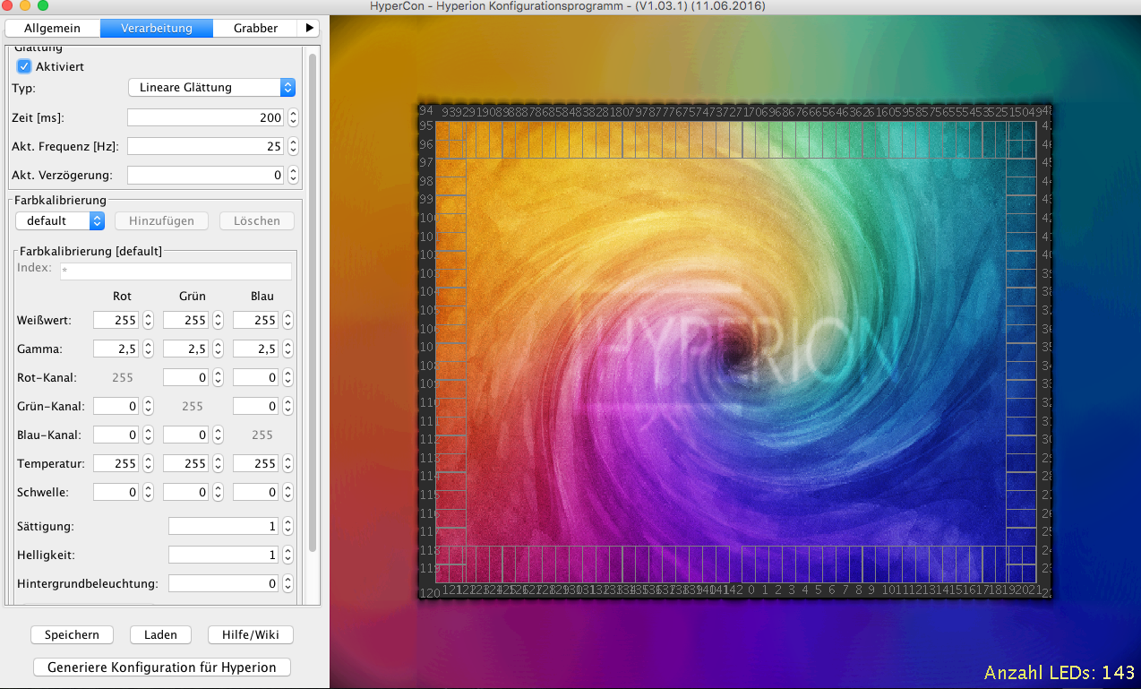 Anbei findet ihr meine Konfigurationsdateien und Bilder vom Aufbau. Die Anzahl der LEDs stimmt mit meinem TV überein.