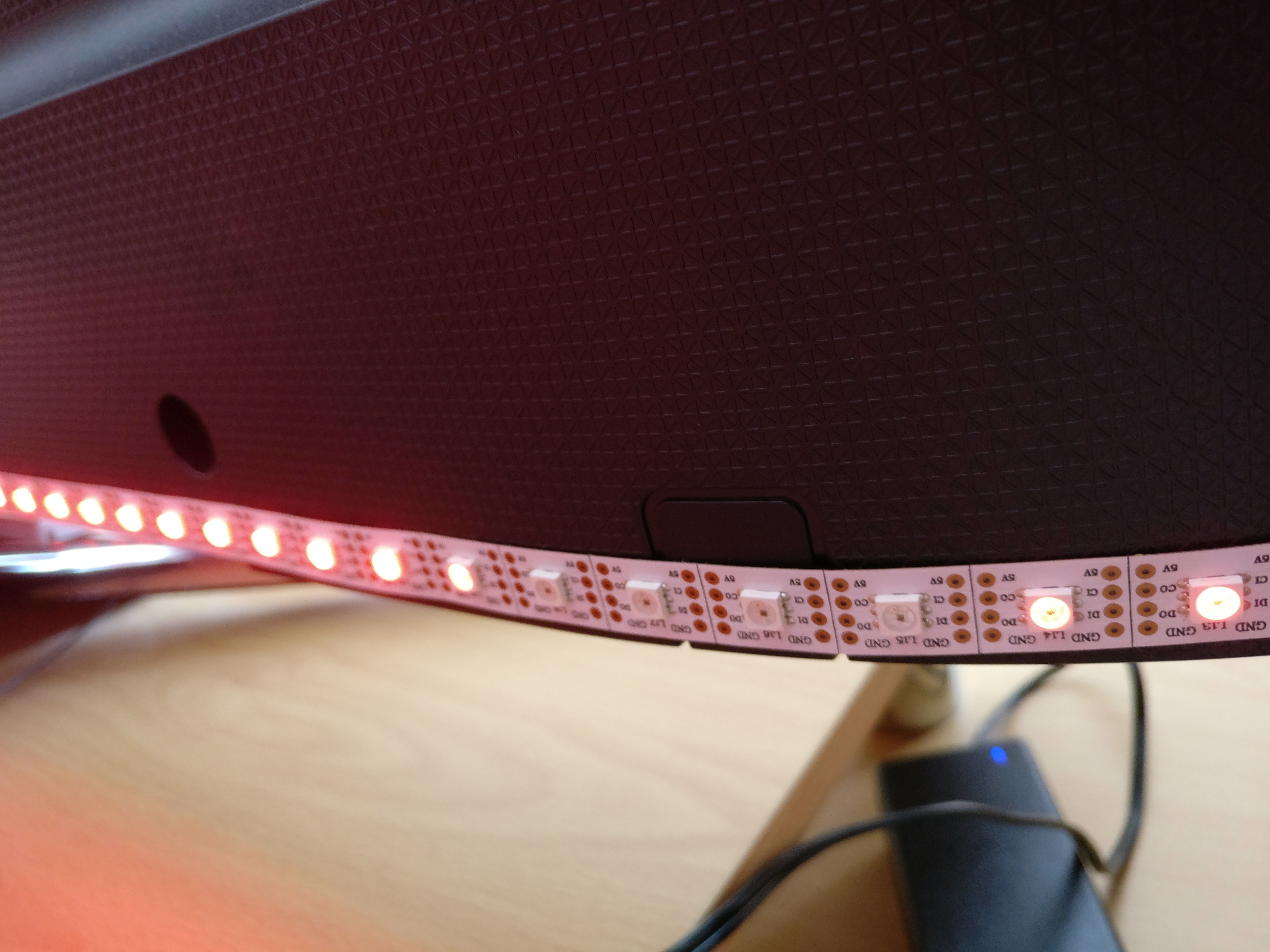 Mir scheinen die Seitenbereiche ein wenig "verzögert" die Farbei anzunehmen und zwar erst, sobald die Seitenbereiche des Bildes heller werden. Oben und unten sind die Leds deutlich "empfindlicher"