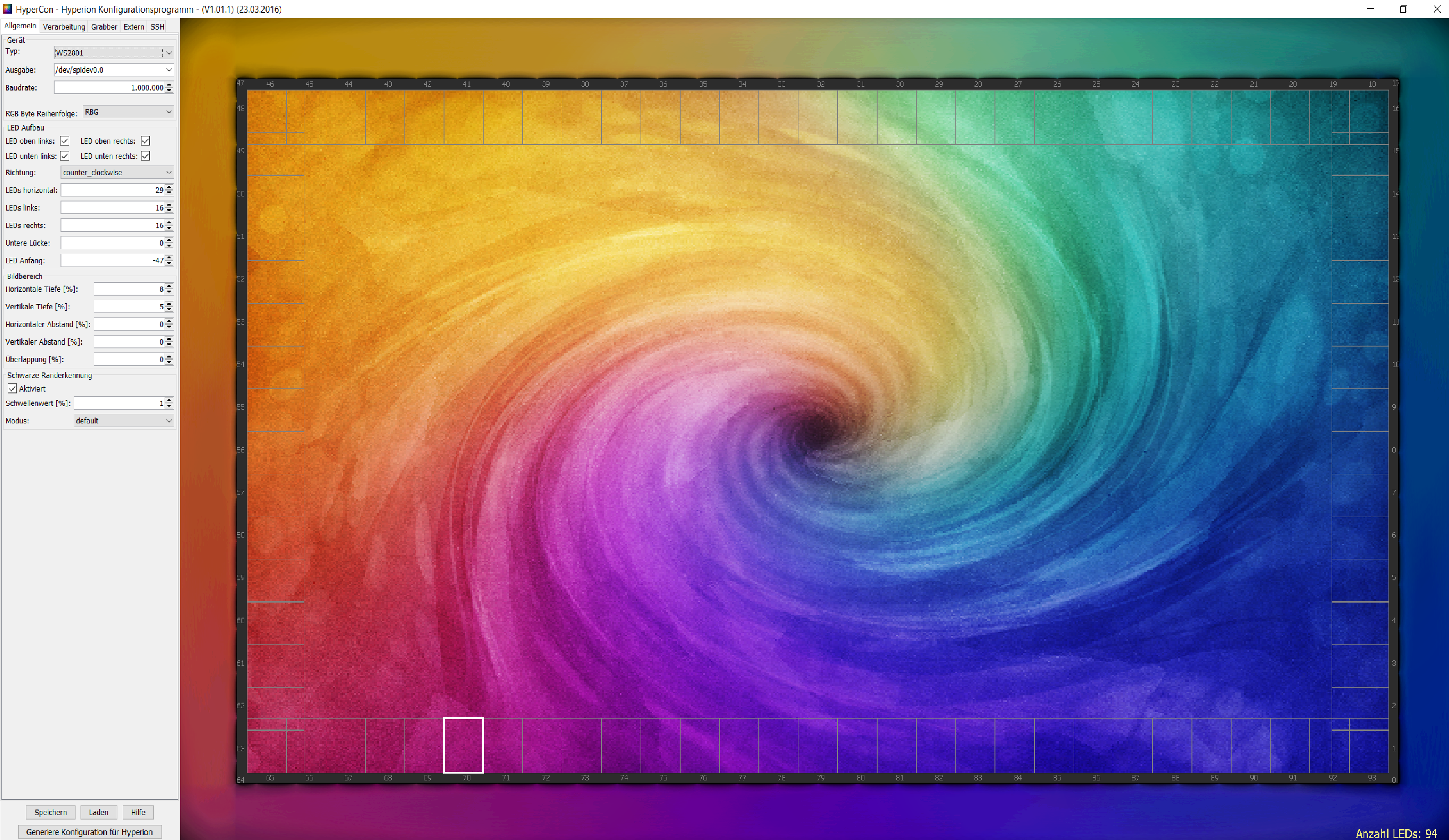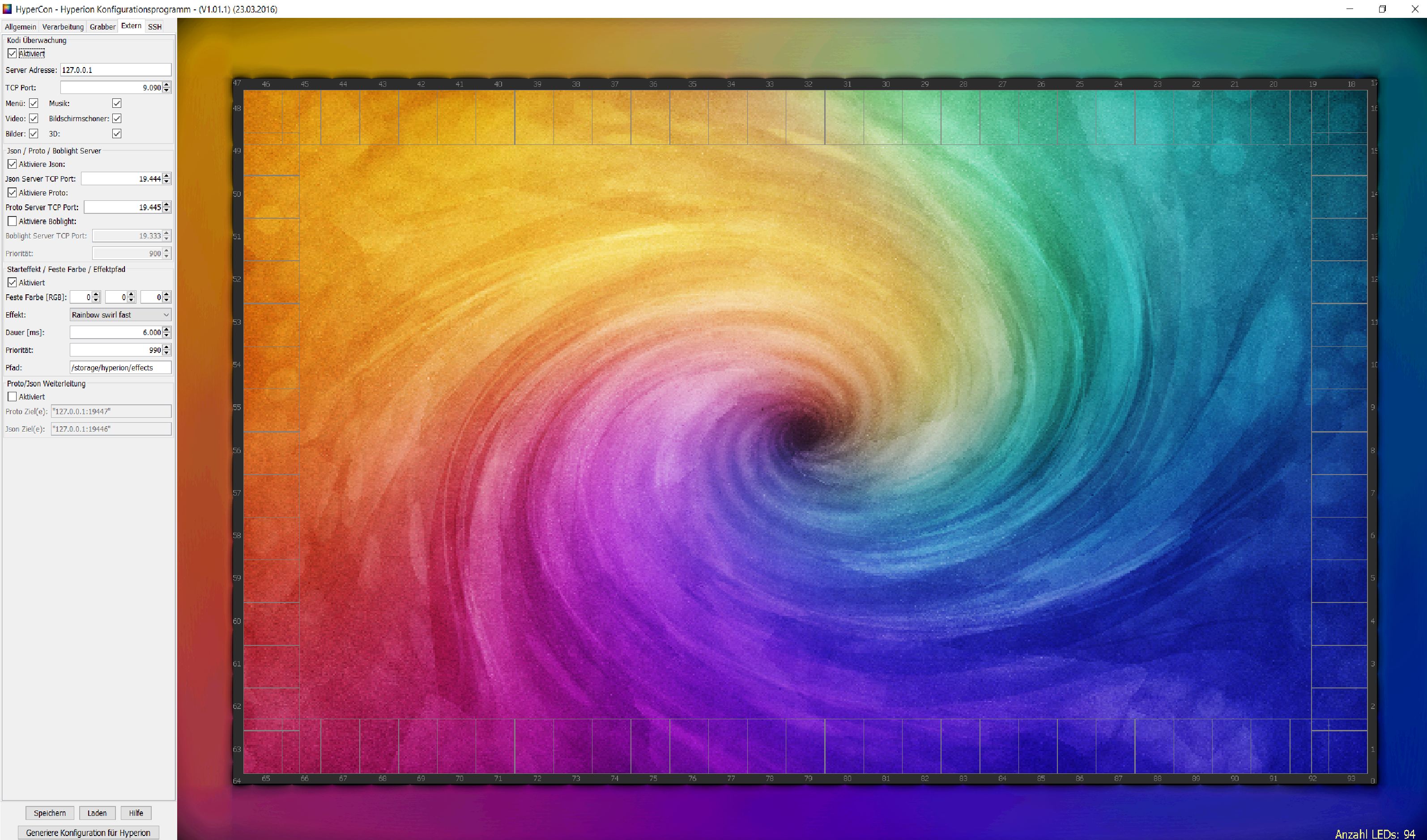 Ich vermute, dass mein Problem in den Einstellungen zuvor liegt. Die HyperCon/Hyperion-Version ist ja eine neuere als die, die Aki im Tutorial bebildert hat. Und da gibt es ja viel mehr Einstellungsmöglichkeiten. Und bei bei einigen weiß ich nicht genau, was ich da hinschreiben soll. Habe wenig Ahnung von der Materie und hatte gehofft, dass ich das größtenteils nur übernehmen brauch, was mit der neuen Version so ja nicht geht, da es andere Optionen gibt. Habe mal meine Einstellungen mit angepinnt.