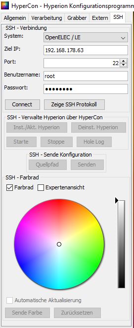 Screenshots des Hyperion GUI Tools (von jedem Tab einen) im Anhang