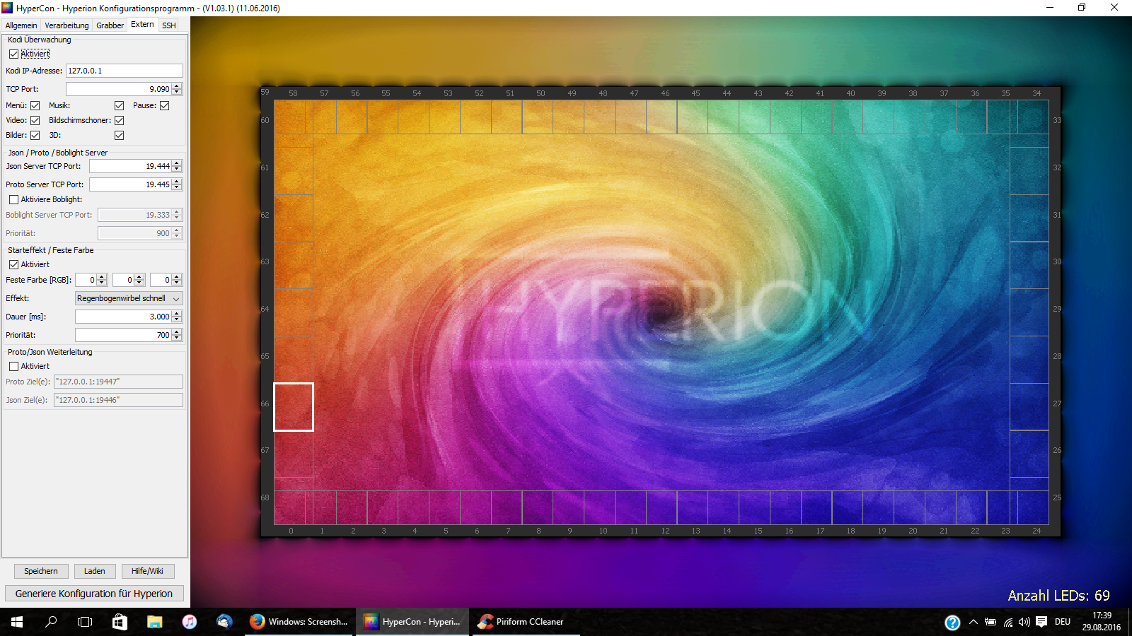 wollte diese nun testen und hatte alles gleich bis auf die anzahl der leds (auf die 5m Rolle) und in der config auf apa102 geändert