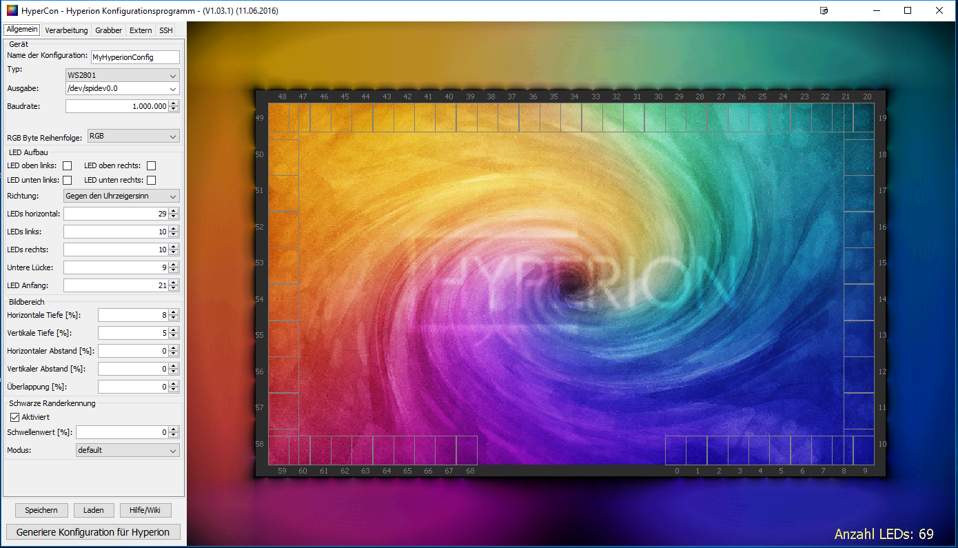 Meine LEDs gehen leider gegen den Uhrzeigersinn - ist aber im Hyperion auch so eingestellt.
