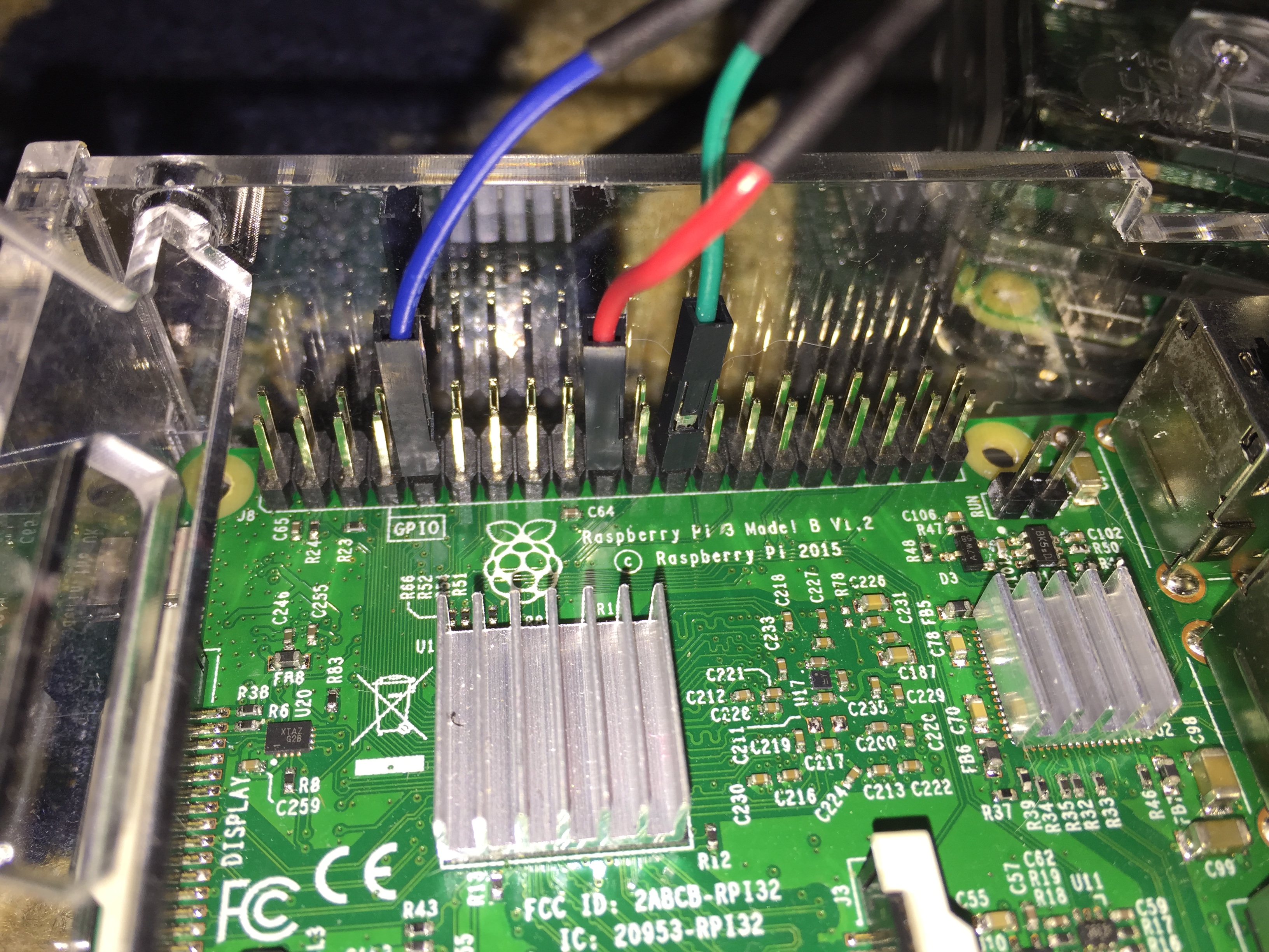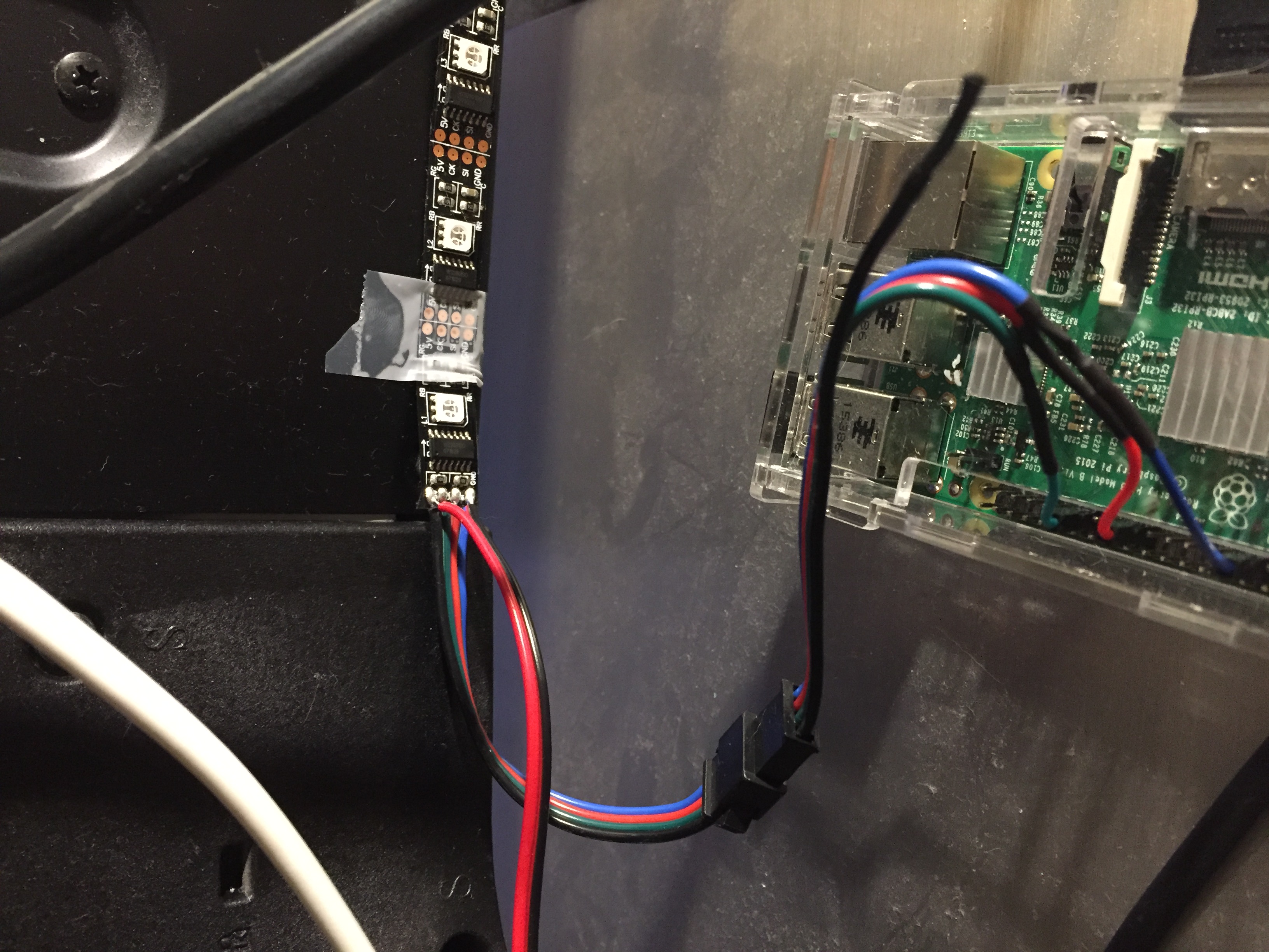 Die Verkabelung zwischen den Strips, dem Netzteil und dem Rapsberry 3 B.