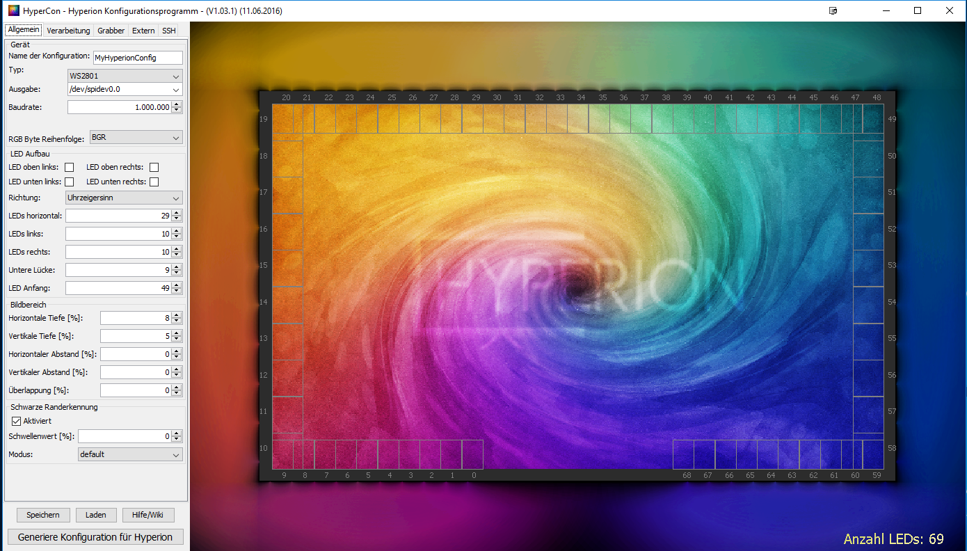 Bei der Hyperion Config bin ich mir eh unsicher was die LEDs angeht. Sieht man in dem Beispielbild die LEDs von vorne oder von hinten? Also schaue ich auf das Fernsehbild oder die Rückseite?