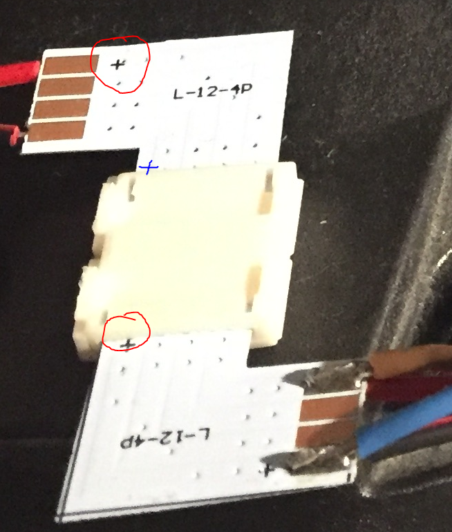 Wie gesagt: Laut Artikelbeschreibung sind die Dinger für andere LED-Stripes gedacht. Von WS2801 steht da jedenfalls nichts. Und wenn die Beschriftung mit den Pluszeichen stimmt, dann würden die Signale ja vertauscht werden. Das sieht zumindest für mich auf den ersten Blick mal so aus. Um also + an + anschließen zu können, müsstest du den Stripe mit der leuchtenden Seite nach unten drehen, oder? Und falls es sich einfach nur um Kupferbahnen handelt, die 2 Stripes in exakt der gleichen Reihenfolge verbinden, warum stehen dann 2 Pluszeichen über Kreuz? Welchen Sinn sollte diese Beschriftung haben?