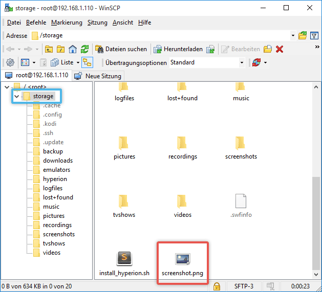 Wenn du dich z.B. mit WinSCP mit deinem Pi verbindest, findest du den Screenshot direkt im storage Ordner.