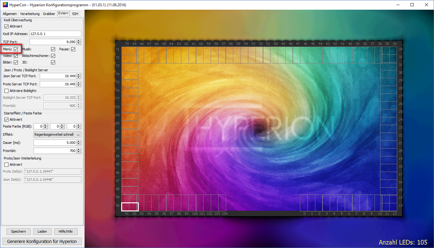 WENN ich aber die Hintergrundbeleuchtung über die App "Hyperion free" anmache, dann funktioniert die Hintergrundbeleuchtung - auch die Effekte.