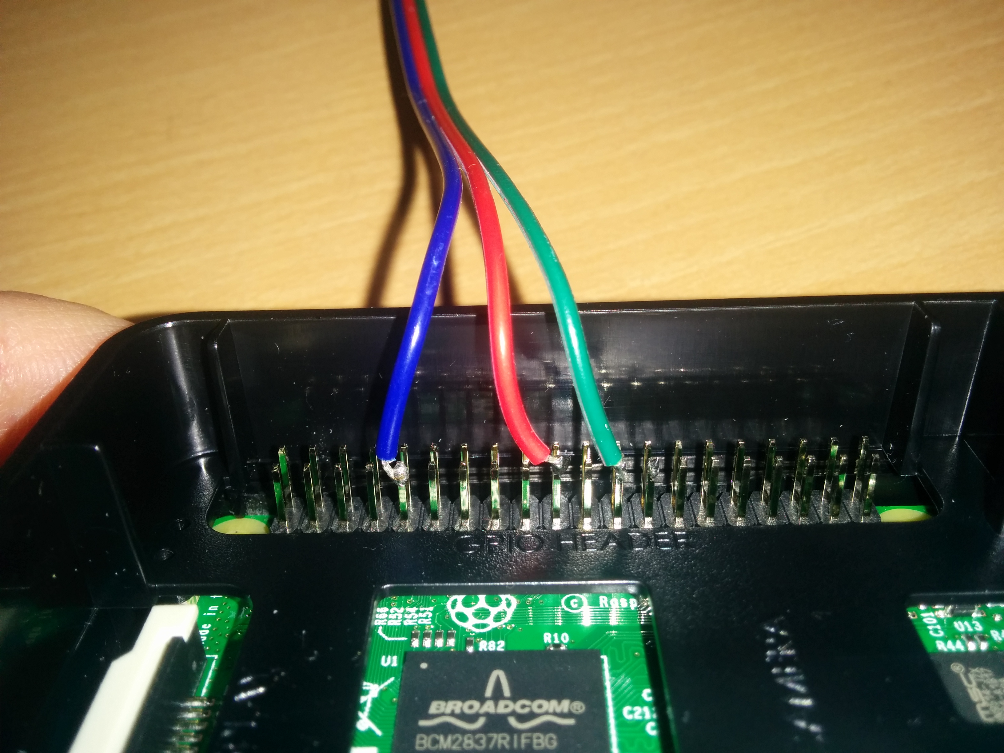 - Litzenkabel vom Stripe an PI (GPIO an Pin 9 19 23 gelötet)