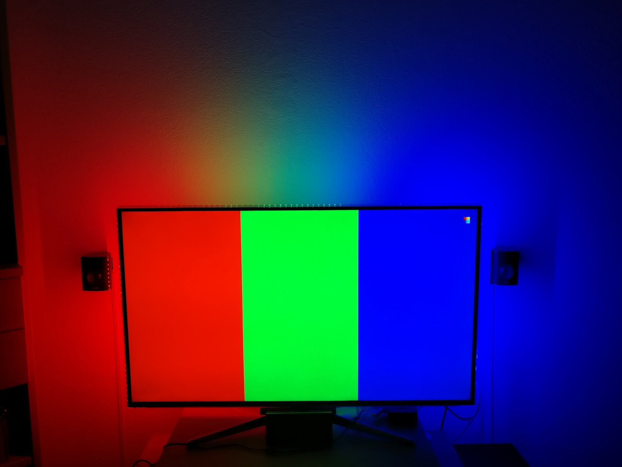 Ich habe dann eine hyperionconfig.json erstellt und "ins Testimage" gepackt. Es funktioniert soweit ganz ordentlich. Allerdings habe ich bei den Testbildern gemerkt, dass die LEDs nicht 100% mit dem Bild übereinstimmen. Beim RGB Testbild ist eine Abweichung von 3 LEDs (nach links) festzustellen.