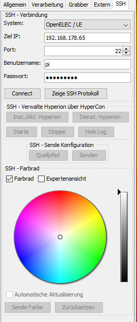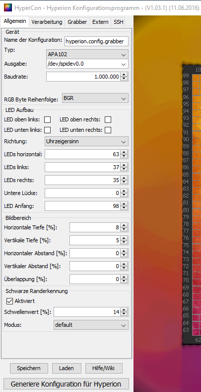 a. keine Steuerung möglich, es leuchten alle LEDs in weiß. Dies tritt bei beiden hyperion.config.json (interner und auch externer Grabber). Verwende die Dateien selbstverständlich separat.