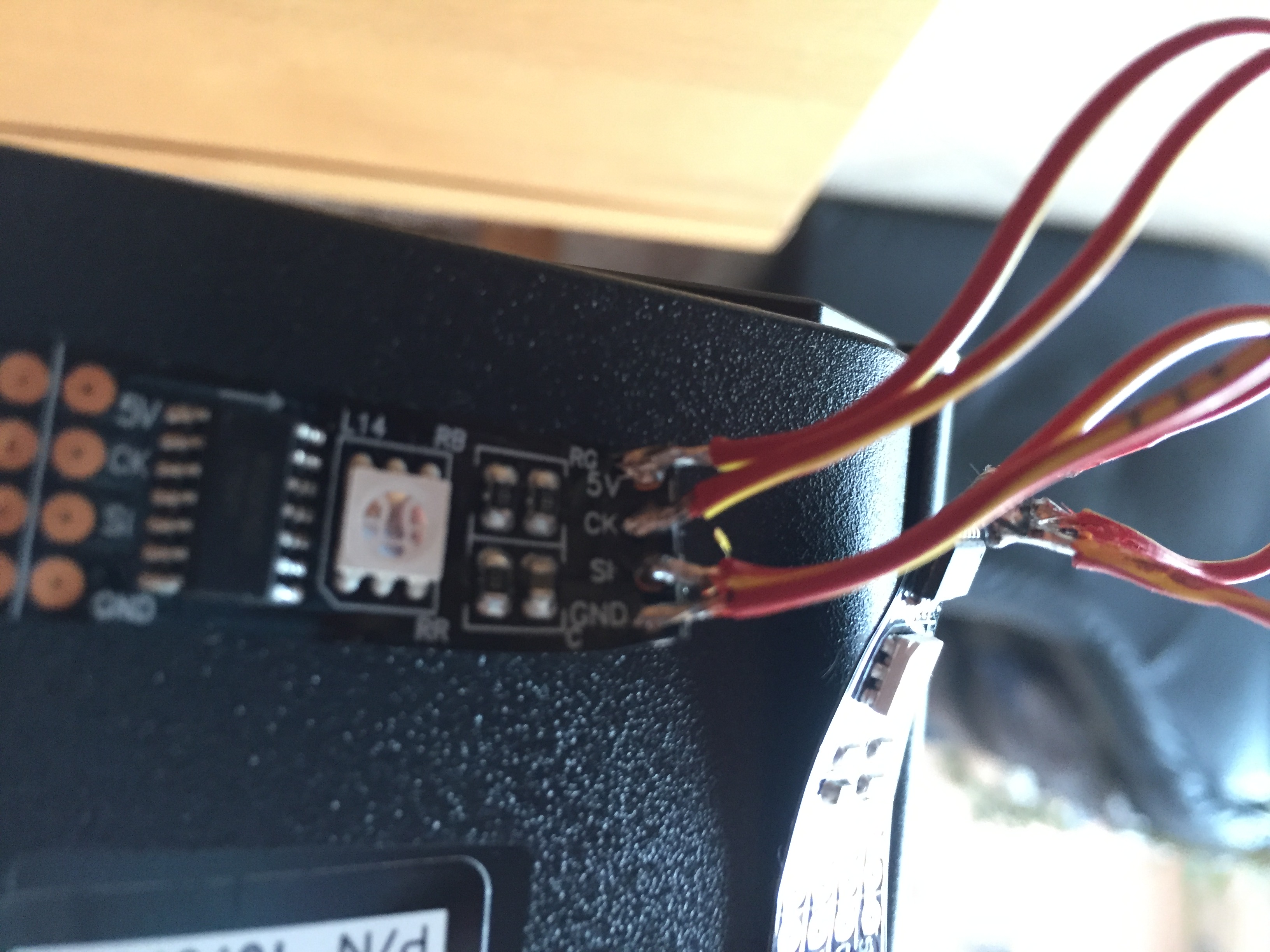 Als ich den fertig verlötet habe, steckte ich als an und es leuchtete tatsächlich auch alles nur nicht unbedingt in den richtigen Farben. Dann löste ich alles vom Strom und Puff gar nichts ging danach. Bloss eine LED mehr nicht.