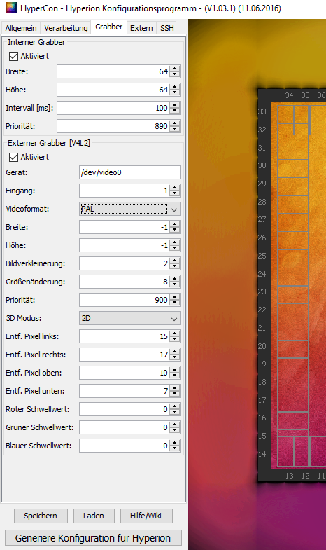 Anscheinend wird der Videograbber erkannt. Das bild hat die LEDs ja auch erreicht, wurde verarbeitet und hat gepasst, allerdings mit starkem flackern verbunden.